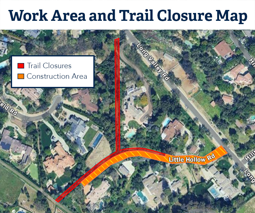The project is expected to take approximately 4-5 weeks to complete. During this time, Little Hollow Road will remain accessible, though some delays are expected. Please note that the adjacent trails will be closed for the duration of the construction.