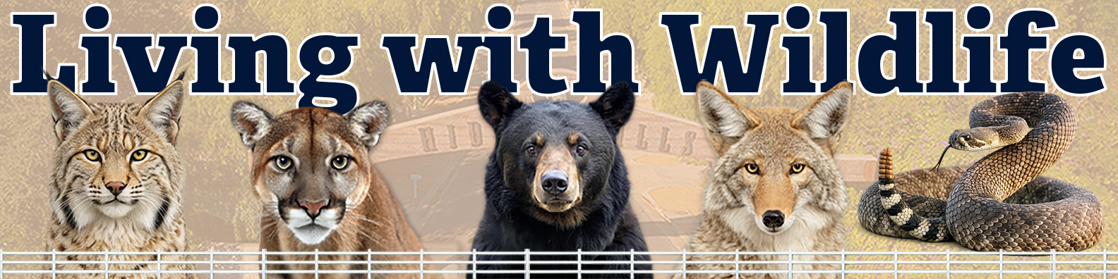 Hidden Hills is a unique community situated at the edge of natural open space, which supports a thriving range of wildlife. Encounters with coyotes, bobcats, bears, mountain lions, and numerous smaller species are a normal part of our environment. Coexisting safely requires awareness, prevention, and responsible behavior from residents.